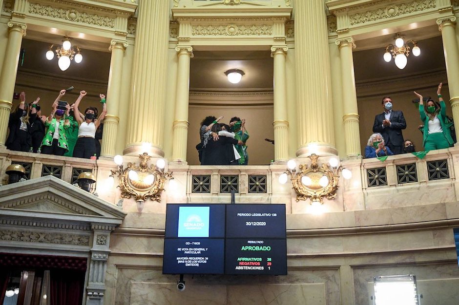 Argentina se ha convertido en el 67º país del mundo en legalizar el aborto, después de que el Senado haya ratificado en una ajustada votación (38 a favor, 29 en contra y una abstención) la ley que la Cámara de Diputados aprobó en primera instancia el pasado 11 de diciembre.